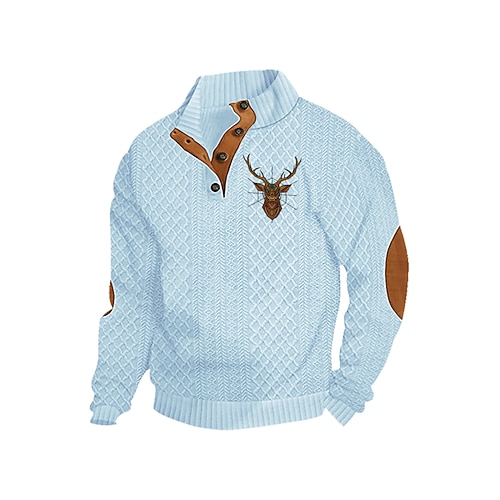 Per uomo Maglia Nero Bianco Vino Verde militare Blu marino Colletto Mao Renna Jacquard Patchwork Quotidiano Ferie Uscire Poliestere Streetwear Casual Autunno Inverno Abbigliamento Felpe con cappuccio
