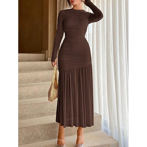 Per donna Abito maxi Tubino Casual Quotidiano Uscire Vestibilità regolare Semplice Manica Lunga Girocollo Rosa chiaro Champagne Vino Marrone Autunno Inverno