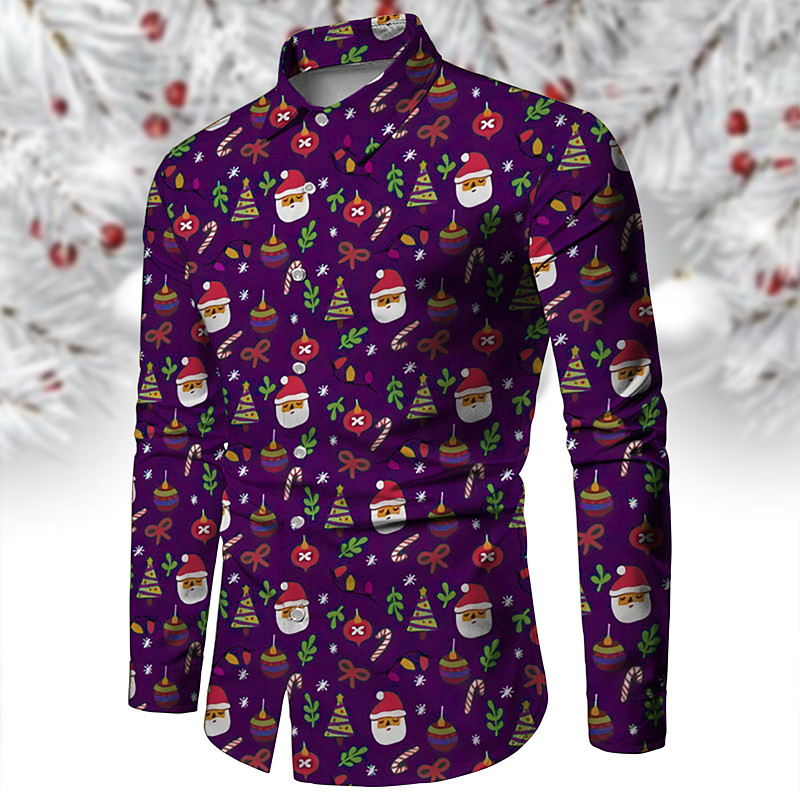 Christmas Men's Santa Claus Printed Shirts Shirts Santa Claus Turndown Wine Green Blue Purple 3D Print Street Long Sleeve Button-Down Print Clothing Apparel Fashion Designer Casual