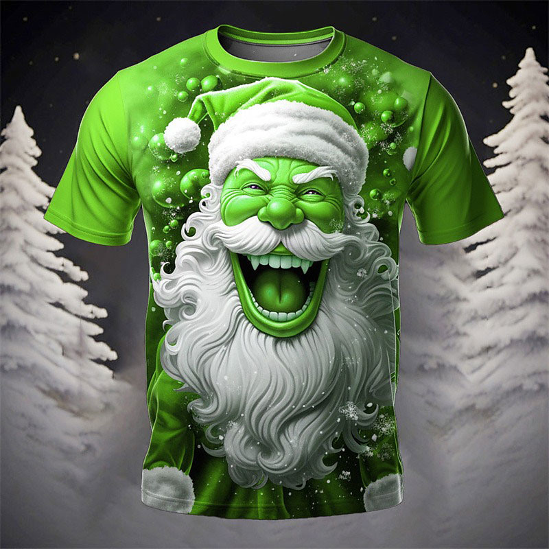 Christmas Men's Santa Claus 3D T-shirts Graphic Santa Claus Daily Designer Retro Vintage 3D Print Tee Sports Outdoor Holiday Going out Deep Purple Yellow Light Green Short Sleeve Crew Neck Spring