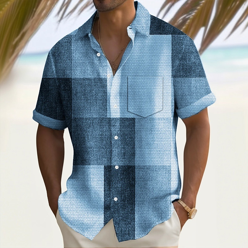 Men's Geometric Color Block Shirt Summer Shirt Button Up Shirt Short Sleeve Fashion Casual Outdoor Vacation Dailywear Summer Spring Turndown 3D Print Collared Shirts Front One Pocket Blue Green