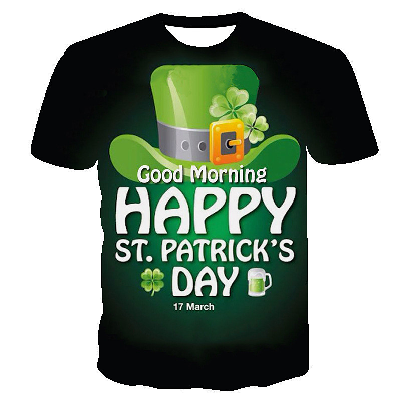 St. Patrick Men's Shamrock Lucky Irish T Shirt Short Sleeve T shirt 3D Print Crew Neck Shirt Designer Casual Club Party Holiday White Summer Spring Clothing Apparel S M L XL XXL XXXL