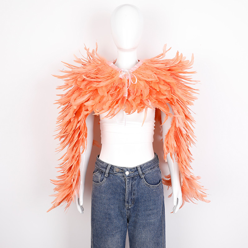 Carnival 2026Rio Carnival Samba Accessories Women's Long Red Feather Cape Shawl with Ribbon Tie Brazil Festival Performance Costume