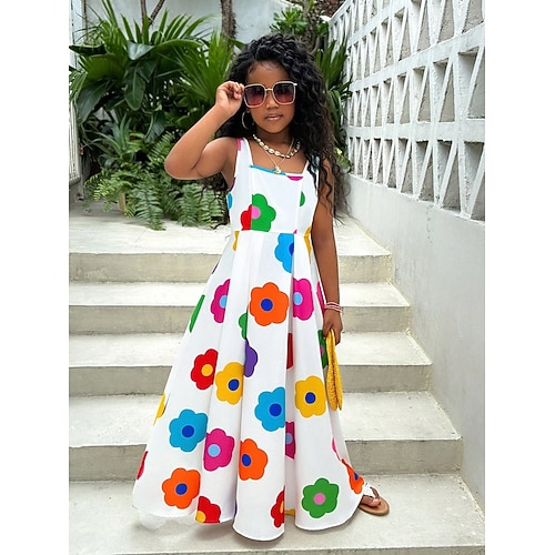 Bambini Ragazze Abito Vestito floreale Floreale Senza Maniche All'aperto Feste Scuola Vacanza Moda Quotidiano Poliestere Maxi Abito a trapezio Estate Dai 4 anni in su Bianco