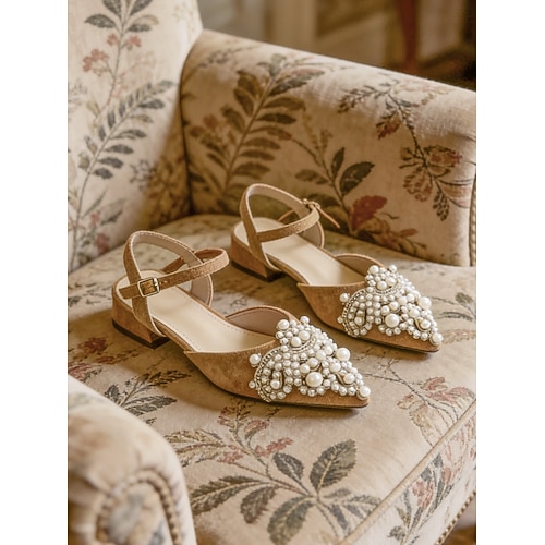 eleganti scarpe basse da donna con cinturino alla caviglia e decorazioni di perle – eleganti ballerine in pelle scamosciata con punta a punta per matrimoni, eventi formali e uso quotidiano