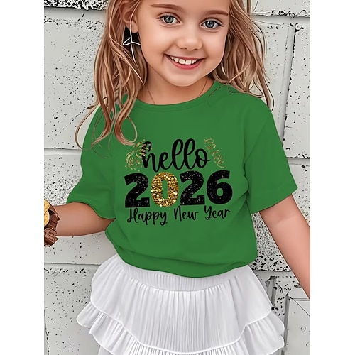 Maglietta con stampa 3D per la festa di Capodanno 2026, manica corta, stile sportivo, primavera, estate, moda, streetwear, per bambini dai 4 ai 12 anni, girocollo, casual, per attività all'aperto,