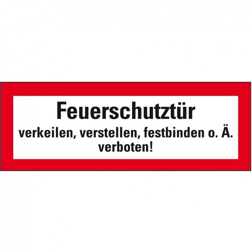 Aufkleber I Feuerwehrschild Feuerschutztür verkeilen, verstellen..., DIN 4066, Folie, 297x105mm, DIN 4066