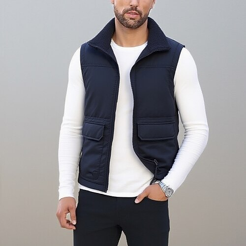 Per uomo Gilet Gilet da pesca Vacanza Quotidiano Data Moda Casual Autunno Inverno Tasca Poliestere Caldo Confortevole Tinta unica Cerniera Collo alla coreana Vestibilità regolare Nero Cachi Blu scuro