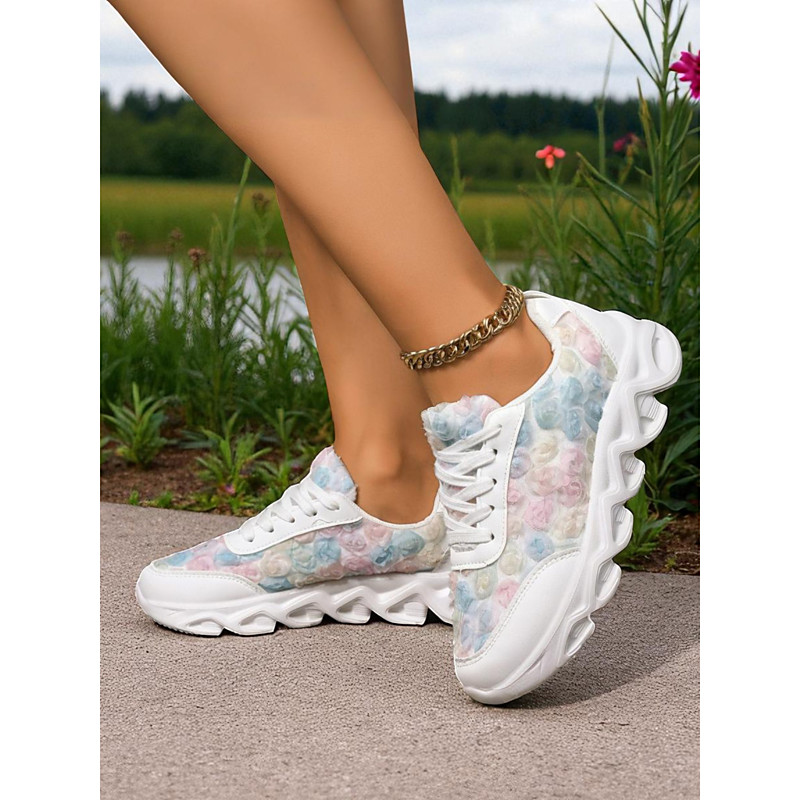 Women's White Sneakers with Colorful Floral Pattern – Lightweight Casual Fashion Shoes for Walking, Travel and Streetwear