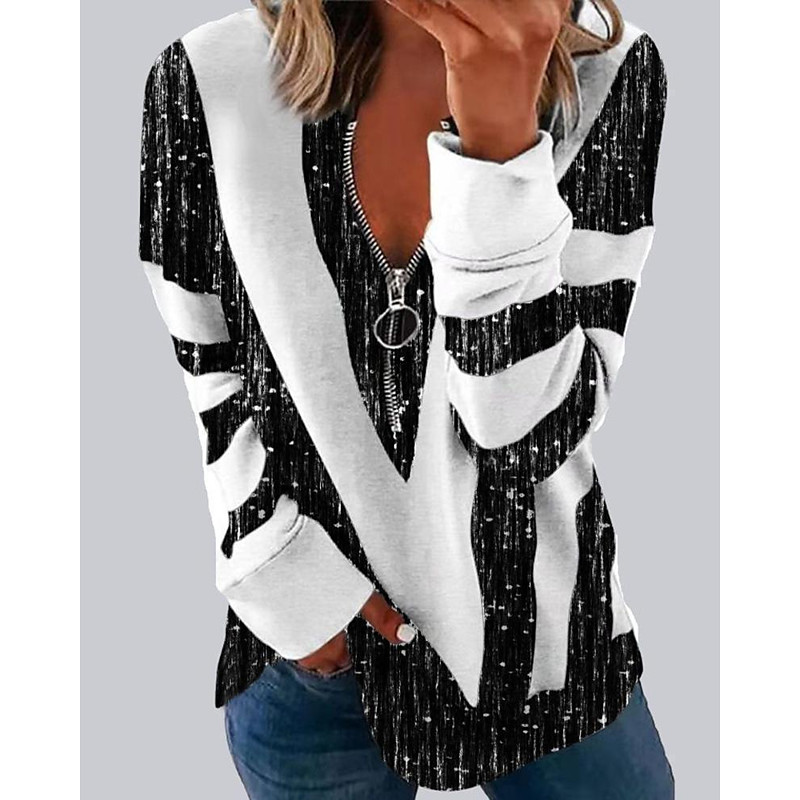 Women's Blouse Dressy Tops Solid Color Graphic Striped Ladies Stylish Classic Long Sleeve Polo Collar Regular Tops Work Daily Going out Zipper Black And White Black White Blue Green Fall Winter