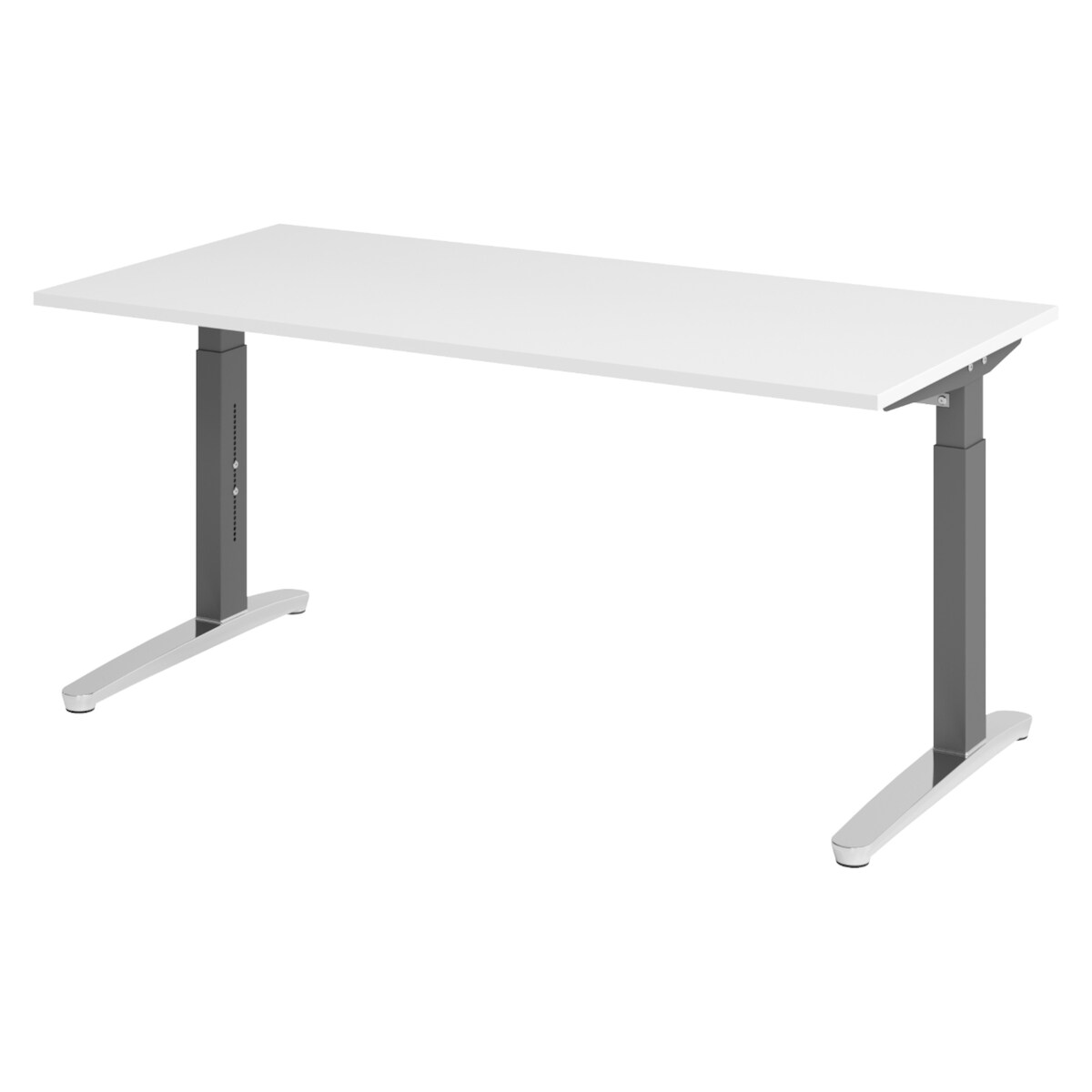 bümö manuell höhenverstellbarer Schreibtisch 160x80 in weiß, Gestell in graphit/alu - PC Tisch höhenverstellbar & groß, höhenverstellbarer Tisch