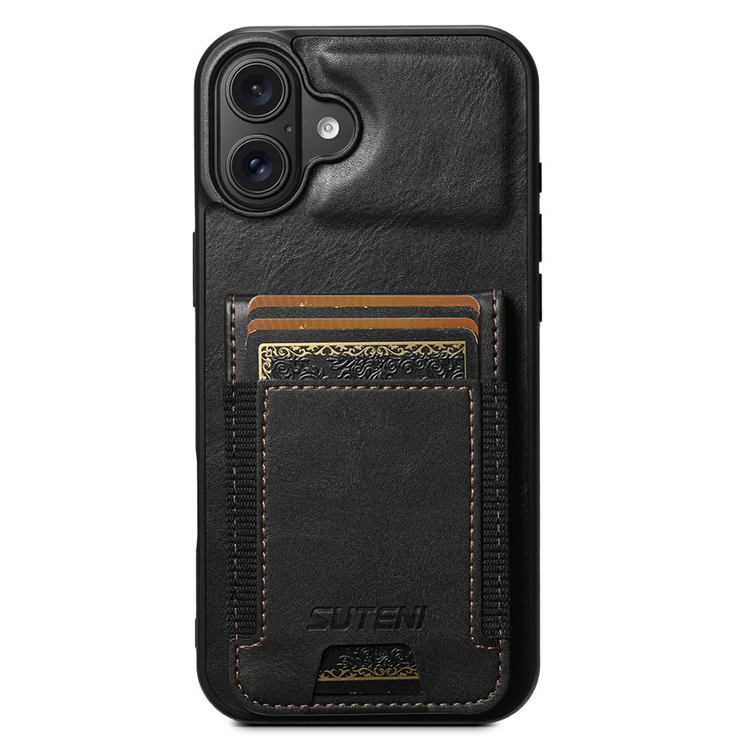 SUTENI Mobilskal till iPhone 16 Korthållare Waxy Läder - Svart