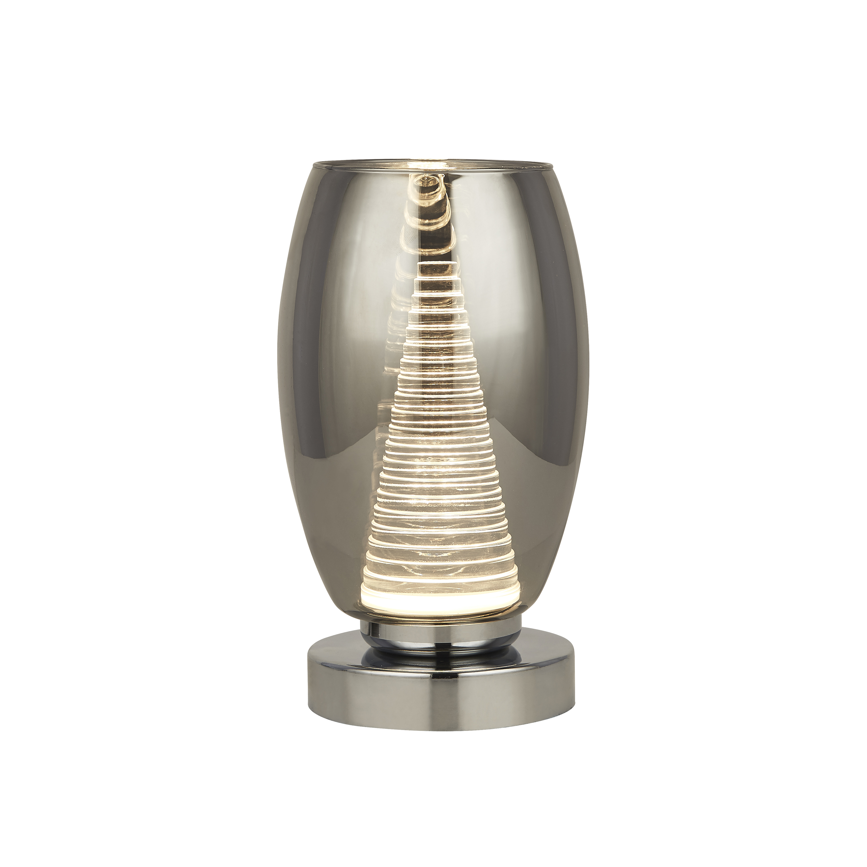 Searchlight Cyclone - tafellamp - Ø 11,5 x 20,5 cm - 6W LED incl. - chroom en gerookt glas