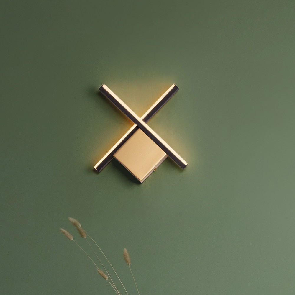 Nova Luce Cross - wandlamp - 30 x 30 x 4 cm - 10W LED incl. - geborsteld goud en zandzwart