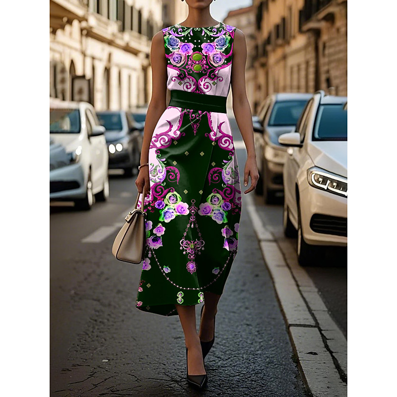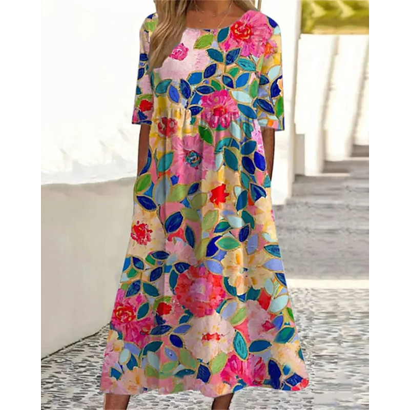 Women's Midi Dress Casual Dress Summer Dress Fashion Modern Daily Beach Weekend Regular Fit Flower Half Sleeve Crew Neck Pink Green Spring Fall
