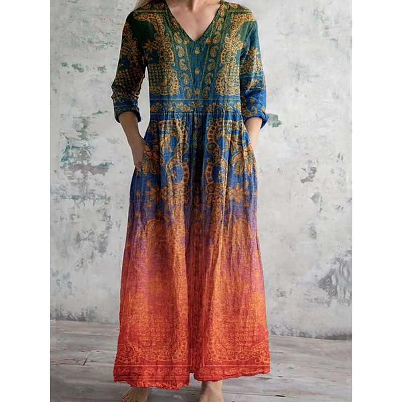 Women's Dress Set A Line Dress Summer Dress Elegant Casual Graphic Paisley Print Midi Dress Half Sleeve V Neck Formal Vacation Yellow Blue Purple Spring Fall Regular Fit