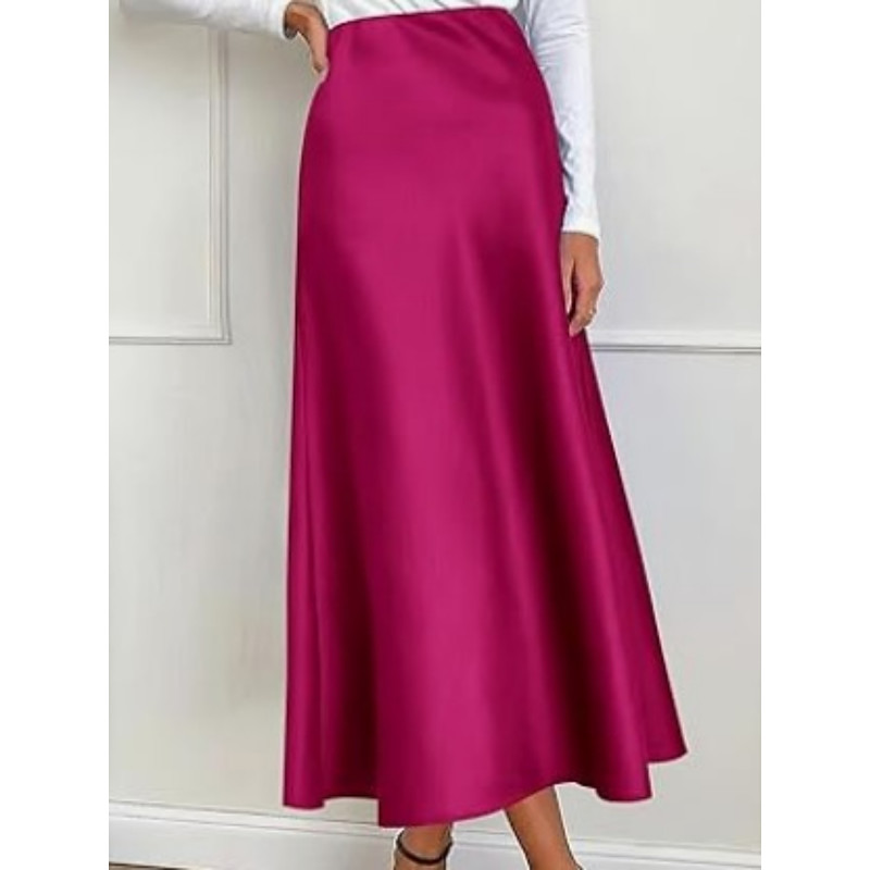 Women's Skirt A Line Elegant Fashion Casual Midi High Waist Skirts Plain Micro-elastic Street Daily Wine Yellow Navy Blue Royal Blue Spring Satin Polyester