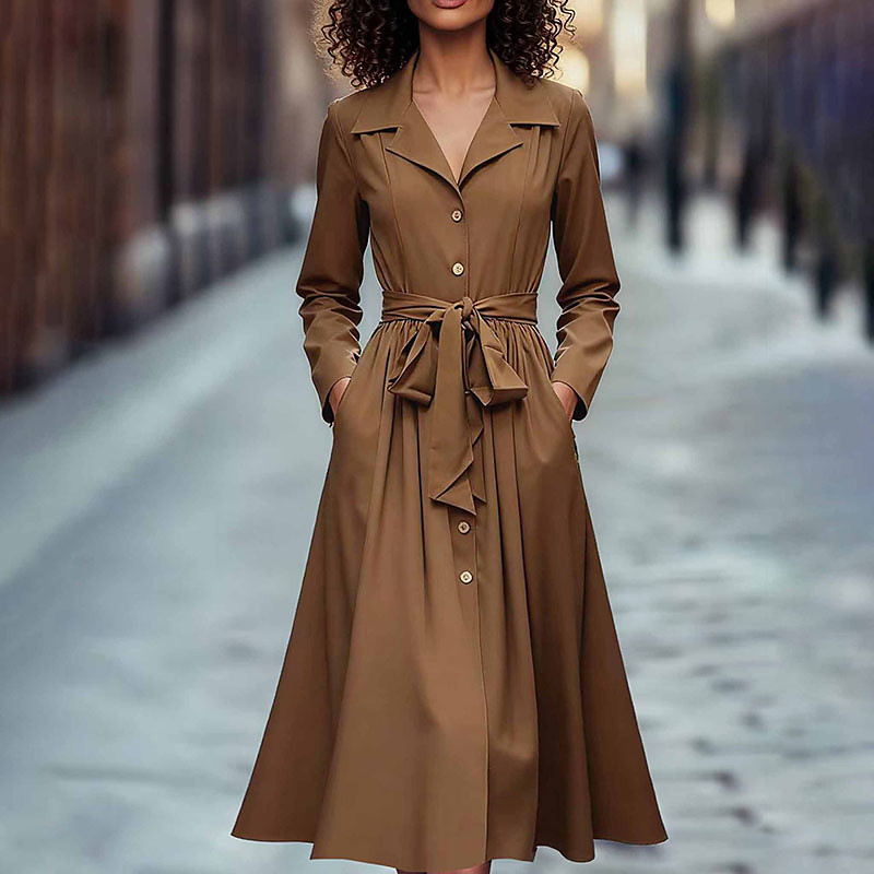 Women's Midi Dress Shirt Dress Elegant Modern Office Daily Going out Regular Fit Plain Long Sleeve Shirt Collar Brown Spring Fall Winter