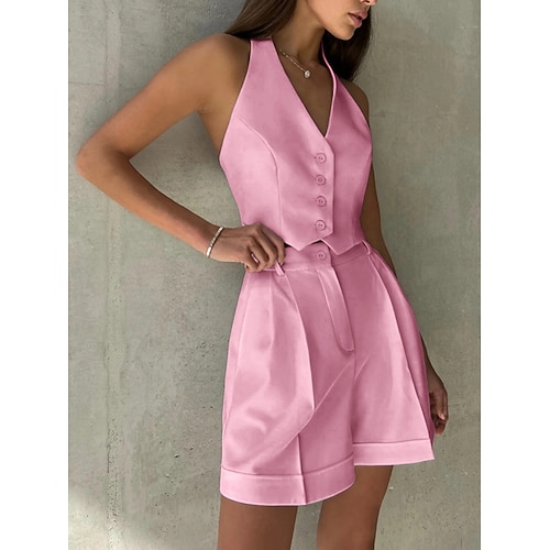 Per donna Set da due pezzi Gilet Set di Pantaloncini Senza Maniche All'americana Semplice Moda Streetwear Casuale Quotidiano All'aperto Bianco Rosa Blu Estate Vestibilità regolare