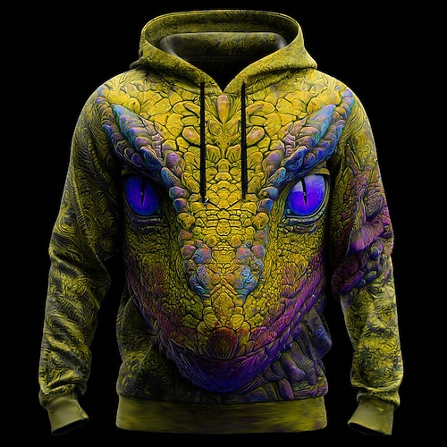 Herren 3D Schlange Kapuzensweatshirt Pullover Cool Party Langarm Rundhalsausschnitt Club Streetwear Gelb Rote Blau Grün Kordelzug Herbst Winter Designer S M L XL XXL XXXL