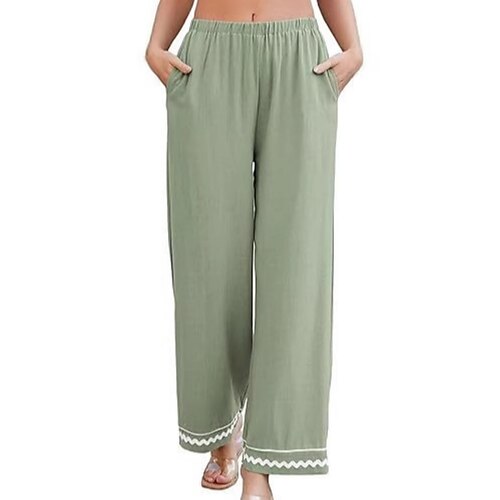 Damen Kunstbaumwollleinen Sommerhose Strandhose Urlaub Streetwear Lässig Volle Länge Mittlere Taillenlinie Blumen Tasche Bequem Unelastisch Täglich Outdoor Schwarz 1 # Weiß Rote Grün Sommer Frühling