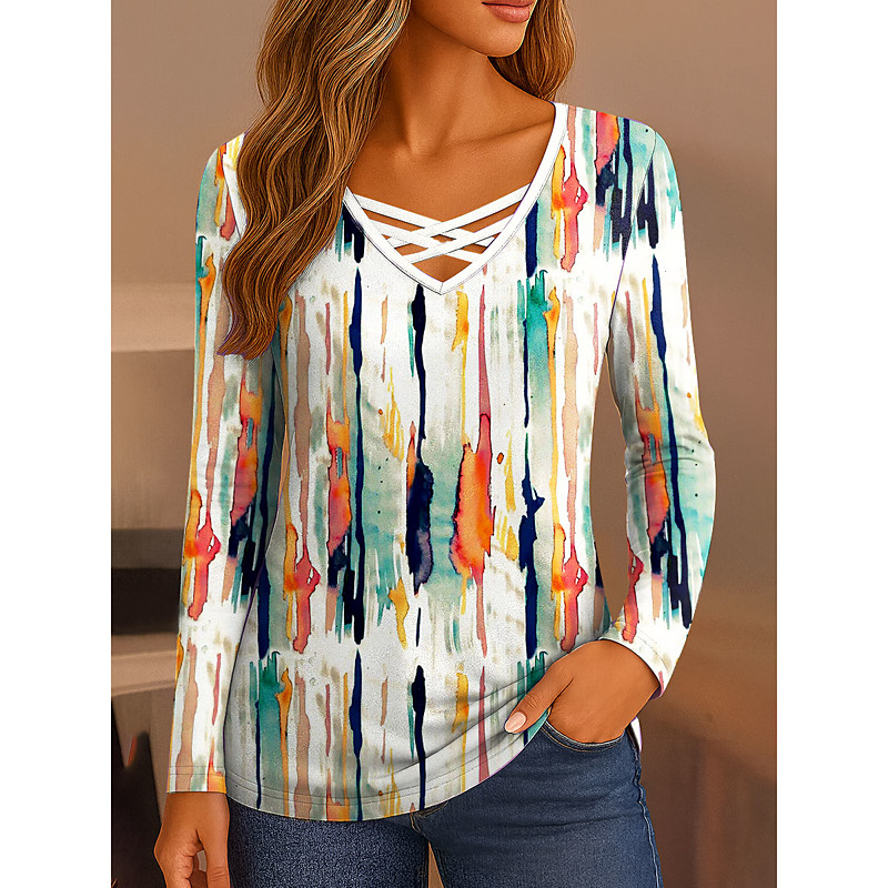 Women's T Shirt Ombre Graphic Vintage Stylish Classic Long Sleeve V Neck Regular Tops Daily Cut Out Print Pink Blue Orange Spring Fall