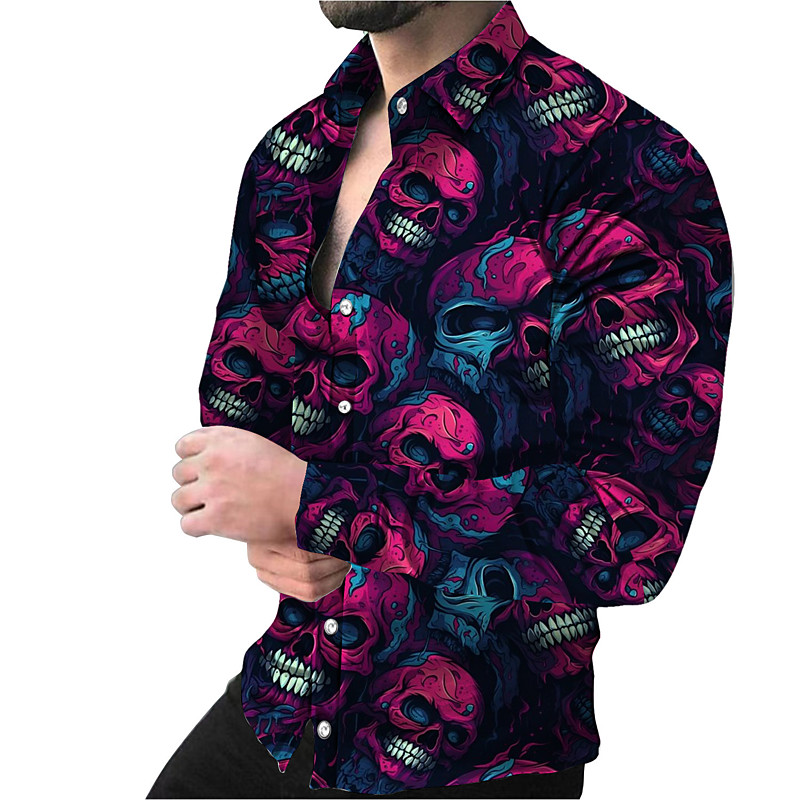 Men's Skulls Shirt Summer Shirt Beach Shirt Long Sleeve Hawaiian Casual Horror Vacation Street Hawaiian Spring Fall Lapel Print Light Yellow Orange red Black Pink Red