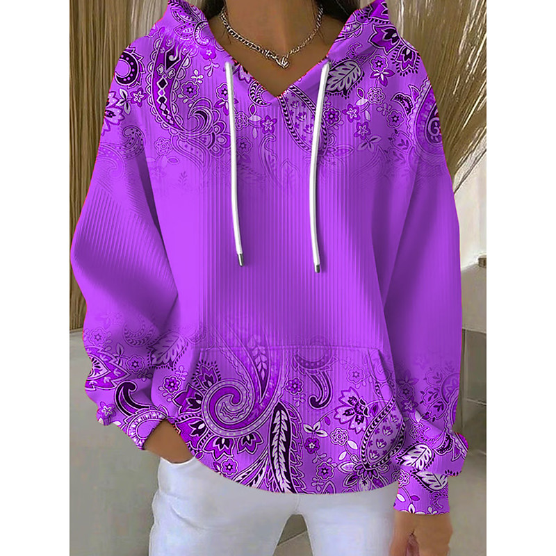 Women's Pullover Hoodie Sweatshirt Graphic Paisley Casual Long Sleeve Hooded Regular Tops Dailywear Casual Sports Pink Blue Purple Orange Fall Winter