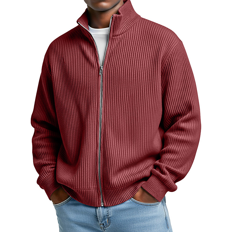 Men's Sweatshirt Corduroy Full Zip Sweatshirt Apricot Wine Red Black White Light Green Standing Collar Plain Textured Sports Outdoor Casual Daily Streetwear Cool Sportswear Spring Fall Clothing