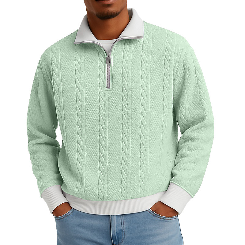 Men's Jacquard Sweatshirt Pullover Quarter Zip Sweatshirt Apricot Light Green Purple Standing Collar Plain Patchwork Color Block Textured Casual Daily Sports Outdoor Streetwear Cool Sportswear
