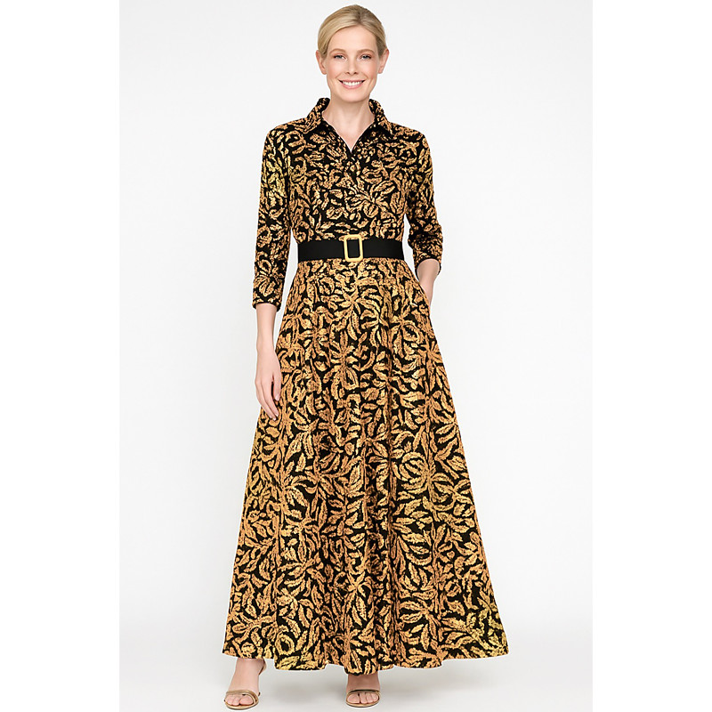A-Line Floor Length Shirt Dress Wedding Guest Dress Formal Dresses Mother of the Bride Dress 3/4 Length Sleeve Shirt Collar Elegant High Split Wedding Formal Satin with Floral Print Bow(s) Slit