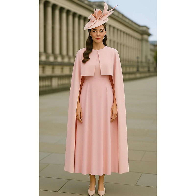 A-Line Dress Sets Tea Length Wedding Guest Dress Mother of the Bride Dress Sleeveless Short Sleeve Crew Neck Elegant Vintage Simple Formal Wedding Guest Crepe Stretch Fabric with Draping