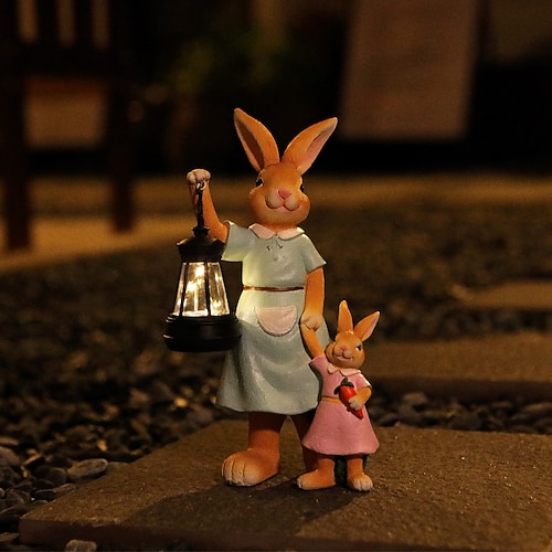 Ostern, wasserdichte, solarbetriebene Hasenfigur aus Kunstharz mit Außenbeleuchtung, ideal für Garten, Hof, Wege und Rasen, Bauernhof und Landschaftsgestaltung. Niedliche Tierfigur, dekorative