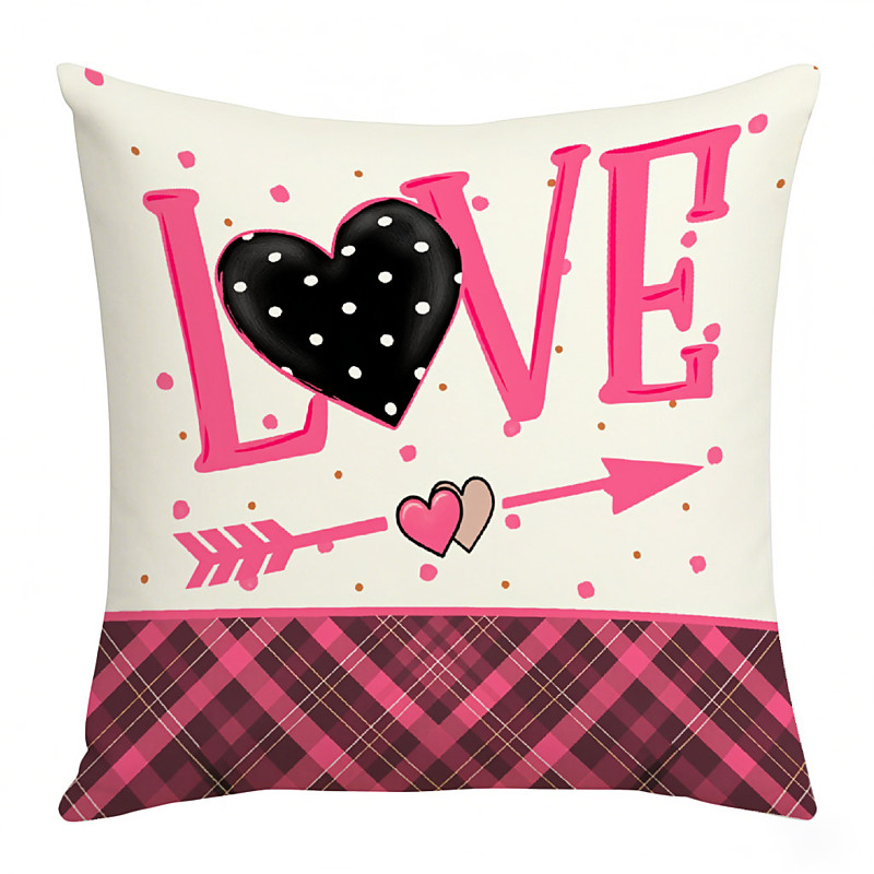 Valentine's Day Black and Pink Checkered Heart Pattern Pillow Case, Cute Digital Print for Holiday Atmosphere, Decorative Cushion for Bedroom, Living Room, Home Decor