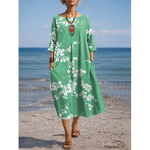 Per donna Abito maxi Abito a trapezio Casual Quotidiano Matrimonio Data Vestibilità comoda Floreale Grafico Manica 3/4 Girocollo Blu Verde chiaro Viola Verde Estate Primavera