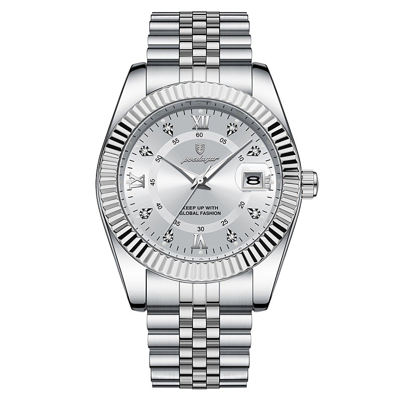 SKMEI Men Quartz Watch Luxury Fashion Rhinestone Business Luminous Calendar Waterproof Decoration Stainless Steel Strap Watch