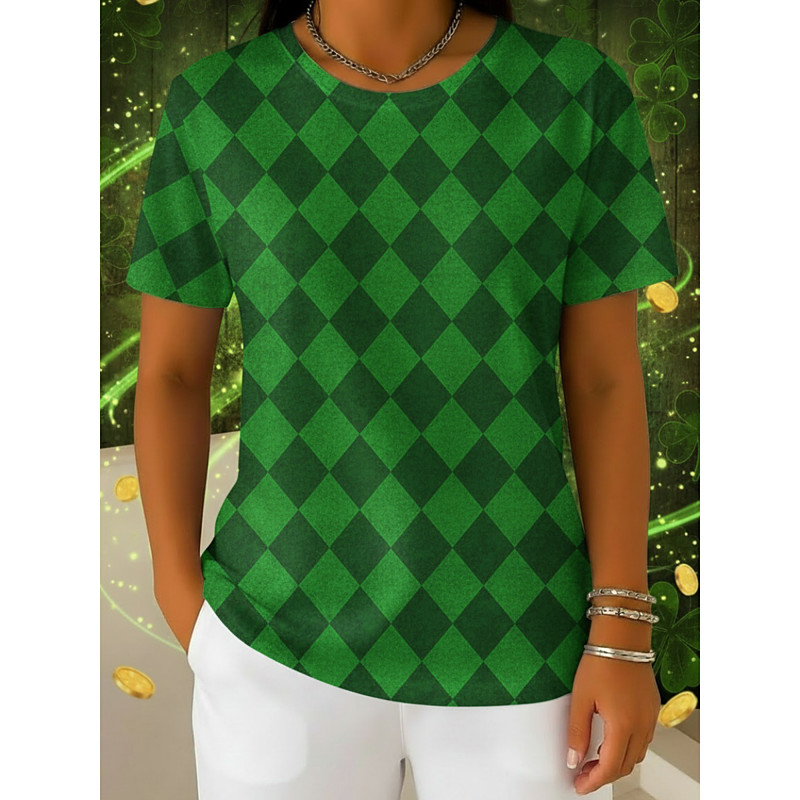 St. Patrick's Day Women's T Shirt Tee Top Geometric Shamrock Stylish Classic Casual Short Sleeve Crew Neck Regular Tops Daily Beach Wear Vacation Wear Print Grass Green Light Green Dark Green Green