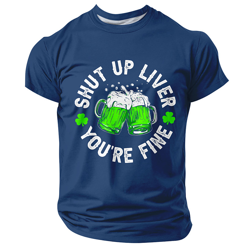 St Patricks Day Shut Up Liver Youre Fine Funny Drinking Green Beer Mug T Shirt Mens Shamrock Graphic Tee Clothing Apparel S M L XL XXL XXXL
