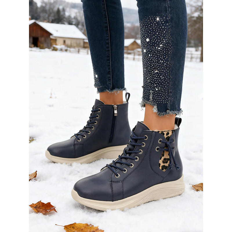 Women's Light Brown High-Top Sneaker Boots with Leopard Print – Lace-Up Side-Zip Casual Ankle Booties for Walking, Travel Street Style