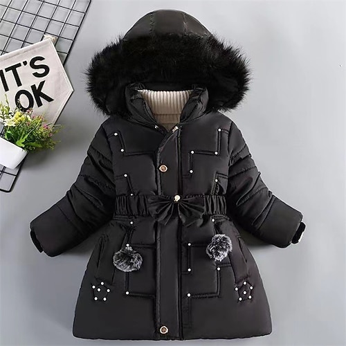 Bambino Da ragazza Piume Tinta unica Di tendenza Colletto di pelliccia Scuola Cappotto Capispalla 4-12 anni Autunno Nero Vino Blu marino