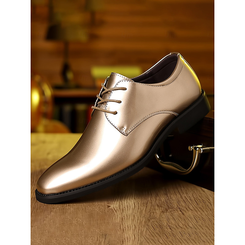 Men's Faux Leather Dress Shoes with Contrast Brown Detailing - Classic, Versatile, Perfect for Formal and Semi-formal Occasions