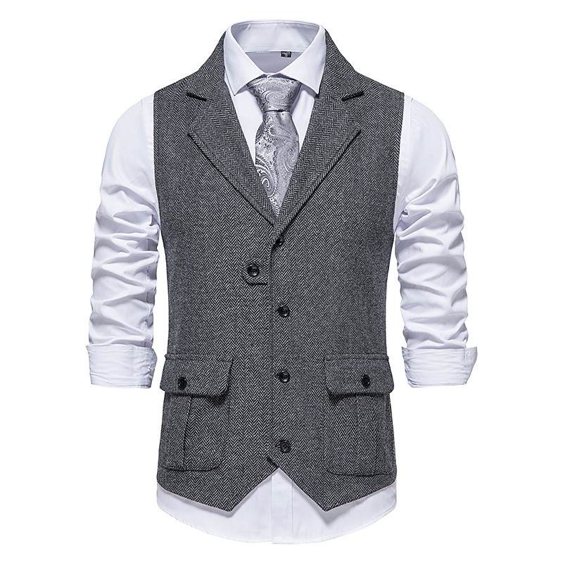 Men's Tweed Vest Waistcoat Formal Wedding Vacation Business Punk Vintage Spring Fall Pocket Buttons Polyester Comfortable Herringbone Single Breasted V Neck Slim Fit Black Wine Navy Blue Brown Vest