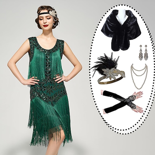 set di accessori da 5 pezzi da donna anni '20 il grande gatsby scialli di paillettes mantello ventagli di piume guanti accessori di perle bastoncino di sigaretta