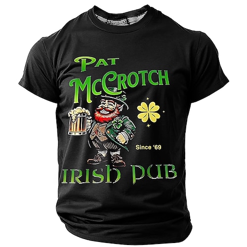San Patrizio Per uomo Trifoglio Irlandese fortunato maglietta Manica corta maglietta Stampa 3D Camicia Informale Giornaliero Nero Verde Grigio Primavera estate Abbigliamento S M L XL XXL XXXL