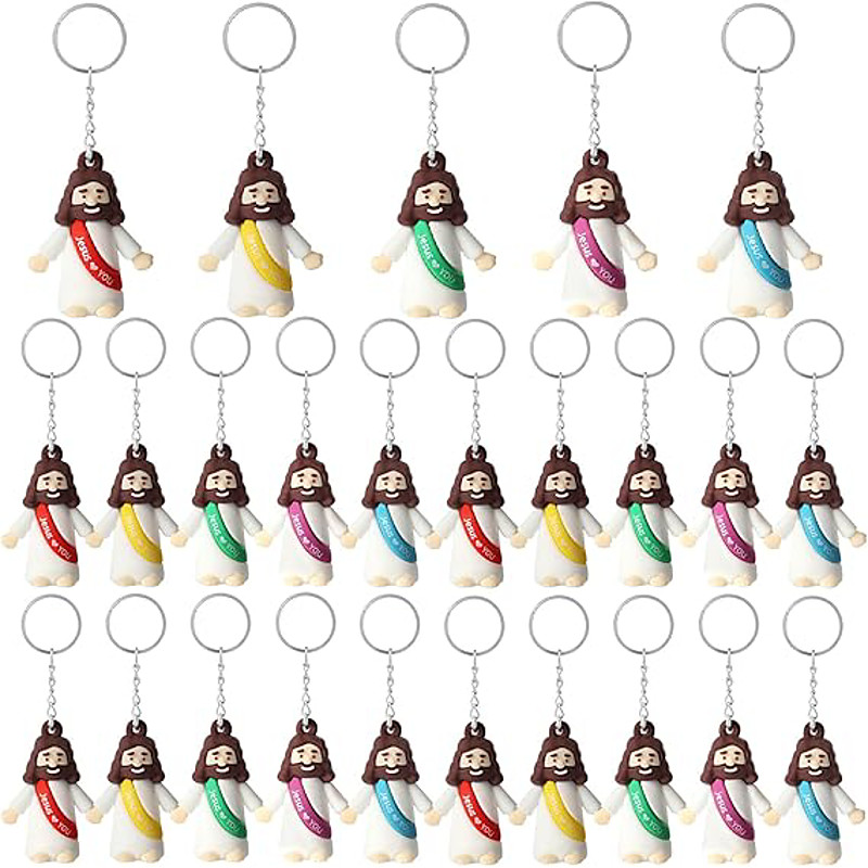 50/100pcs Little Jesus Keychains, Mini Jesus Figurine Keychains in Bulk Easter Gift Tiny Statues for Easter Egg Stuffers Multicolor Tiny Jesus Keychains, Miniature Keychain to Hide