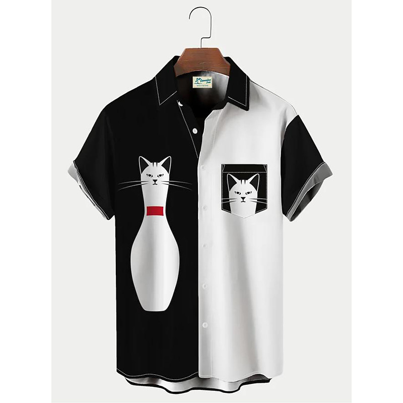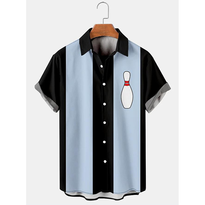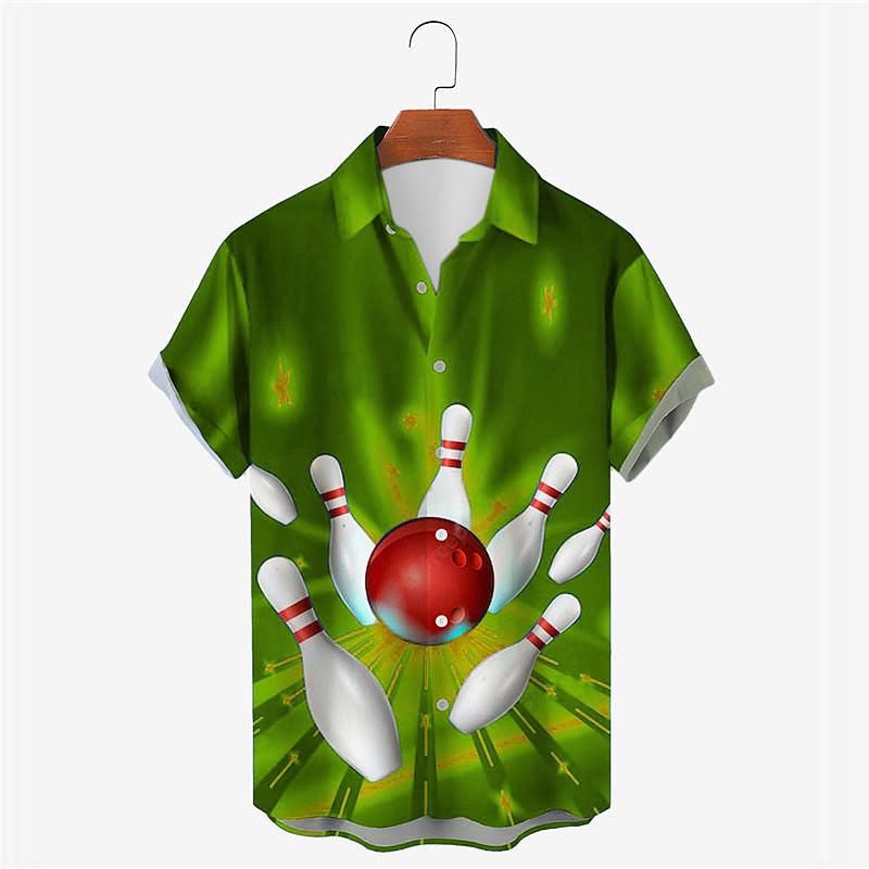 Men's Graphic Prints Bowling Ball Shirt Short Sleeves Shirt Turndown Outdoor Street White Green Black Yellow Red Blue Print Button-Down Clothing Apparel Designer Casual Soft Breathable