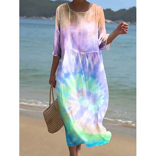 Per donna Abito maxi Vestito Estivo Abito a Tubino Vacanza Casual Spiaggia Uscire Vestibilità comoda Ombre Grafico Astratto Manica 3/4 Girocollo Giallo Rosa Ametista Estate Primavera Autunno