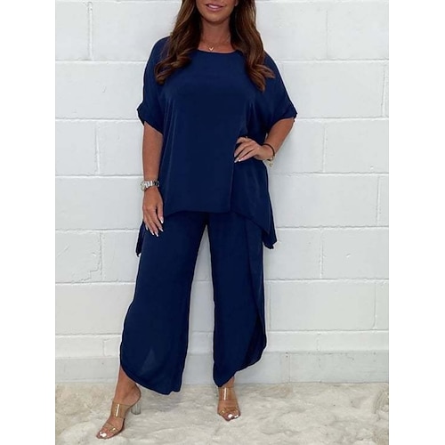 Per donna Set da due pezzi Set di Pantaloni Bolero Top Manica Corta Girocollo Semplice Moda Streetwear Casuale Quotidiano All'aperto Verde chiaro Blu marino Azzurro cielo Estate Vestibilità comoda
