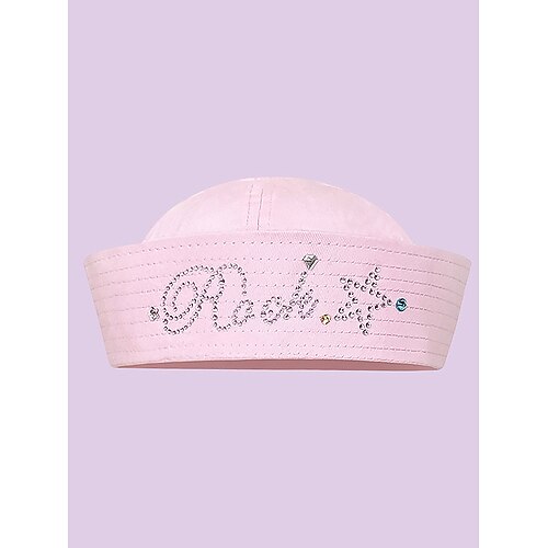 Cappello da marinaio da donna con scritta in strass, elegante berretto da esibizione per abiti kpop, feste in maschera di Natale e accessori per costumi da palcoscenico