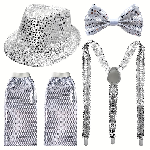Costume di Carnevale Disco Carnevale Costume di fantasia Cappello Panama Bretelle a Y Retrò Vintage Anni '80 Paillettes Adulti Per uomo Per donna Unisex Halloween Carnevale Feste Performance Danza